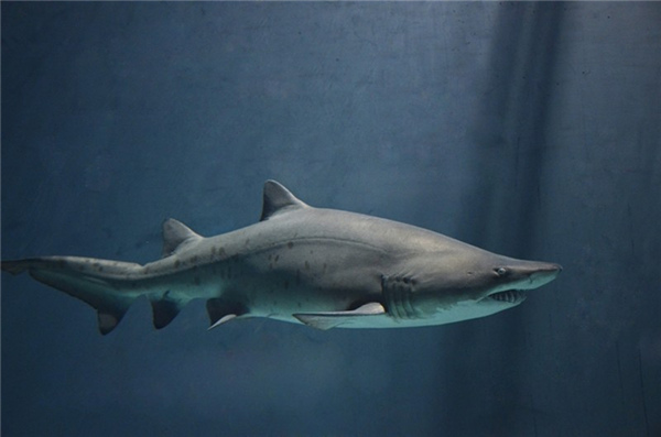 沙虎鲨是一种分布在温带、亚热带海域的鲨鱼,外形看起来威武凶猛,尤其是它们那排锋利的牙齿,是最显著的外观特征之一。