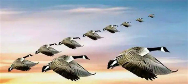 前方领头的大雁振翅时会在后方形成上升气流,队伍中的每一只雁都能借此减少空气阻力,从而节省体力。同时,整齐的队形还能让大雁更容易保持队伍方向和沟通位置,促进迁徙过程中的协作。
