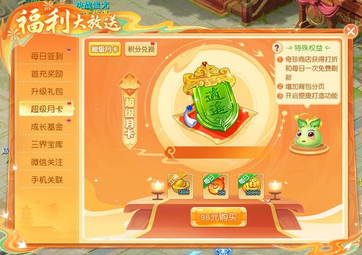 《逍遥情缘》福利加码的超级月卡,到底都有哪些福利可享呢?