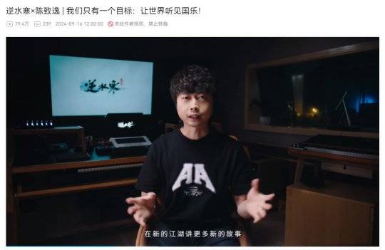 在前不久,《逆水寒》官宣了与“音之魔神”陈致逸老师的合作,并承诺“我们只有一个目标:让世界听见国乐!”