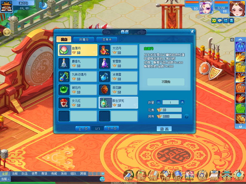为了增加比武的乐趣性,在演武场还设置了一个商店,商店里售卖一些战斗用的道具,例如药品、美酒等等。这些道具只能通过切磋积分进行购买,而且只在跨服演武场的战斗中有效。