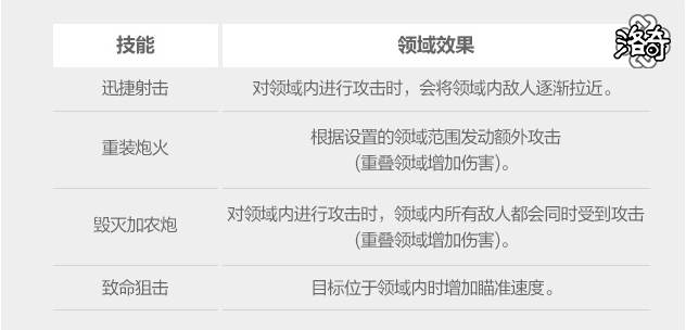 设置枪炮师技能强化领域,在一段时间内增强枪炮师技能效果。