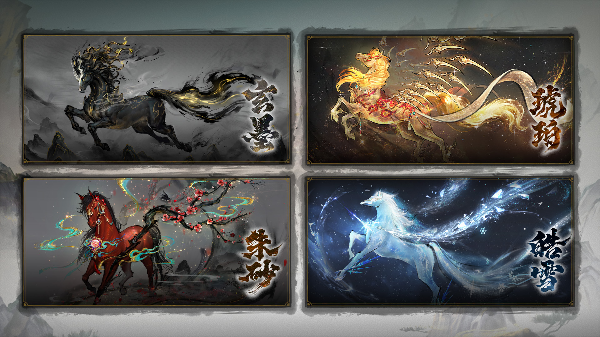 本次更将水墨艺术融入技能,其炫耀技能“挥毫驭神骏”及“泼墨纵马傲乾坤”可挥毫绘出通天丹青之路。系列坐骑亦承此魂:“丹青绘卷”系列坐骑铺就长卷,御金晖、凌赤霞,瞬息数里清光;“骏驰九天”系列坐骑踏墨裂云,乘光骋霄,昂首时已骋九霄。养成马年幻兽,还能触发“策马奔腾”加速效果,骑乘任意坐骑均享基础移速提升!可谓是集“至美”“至强”于一身。